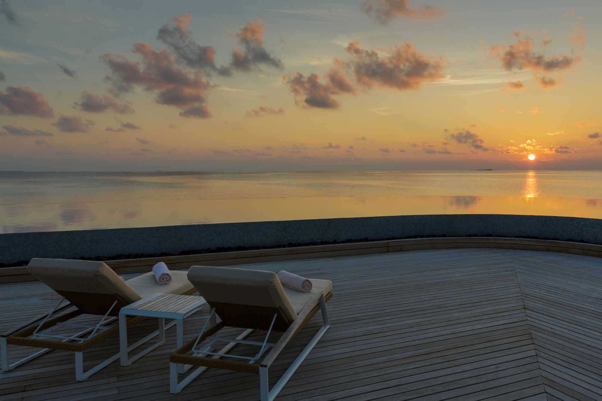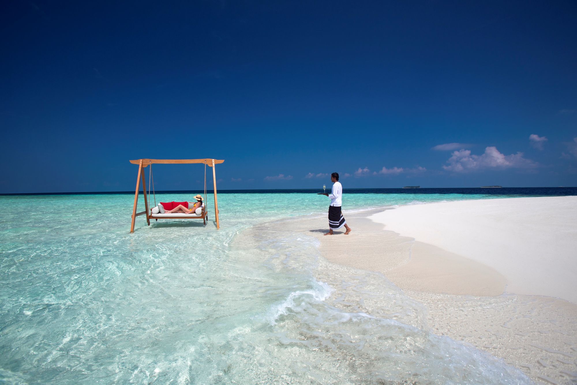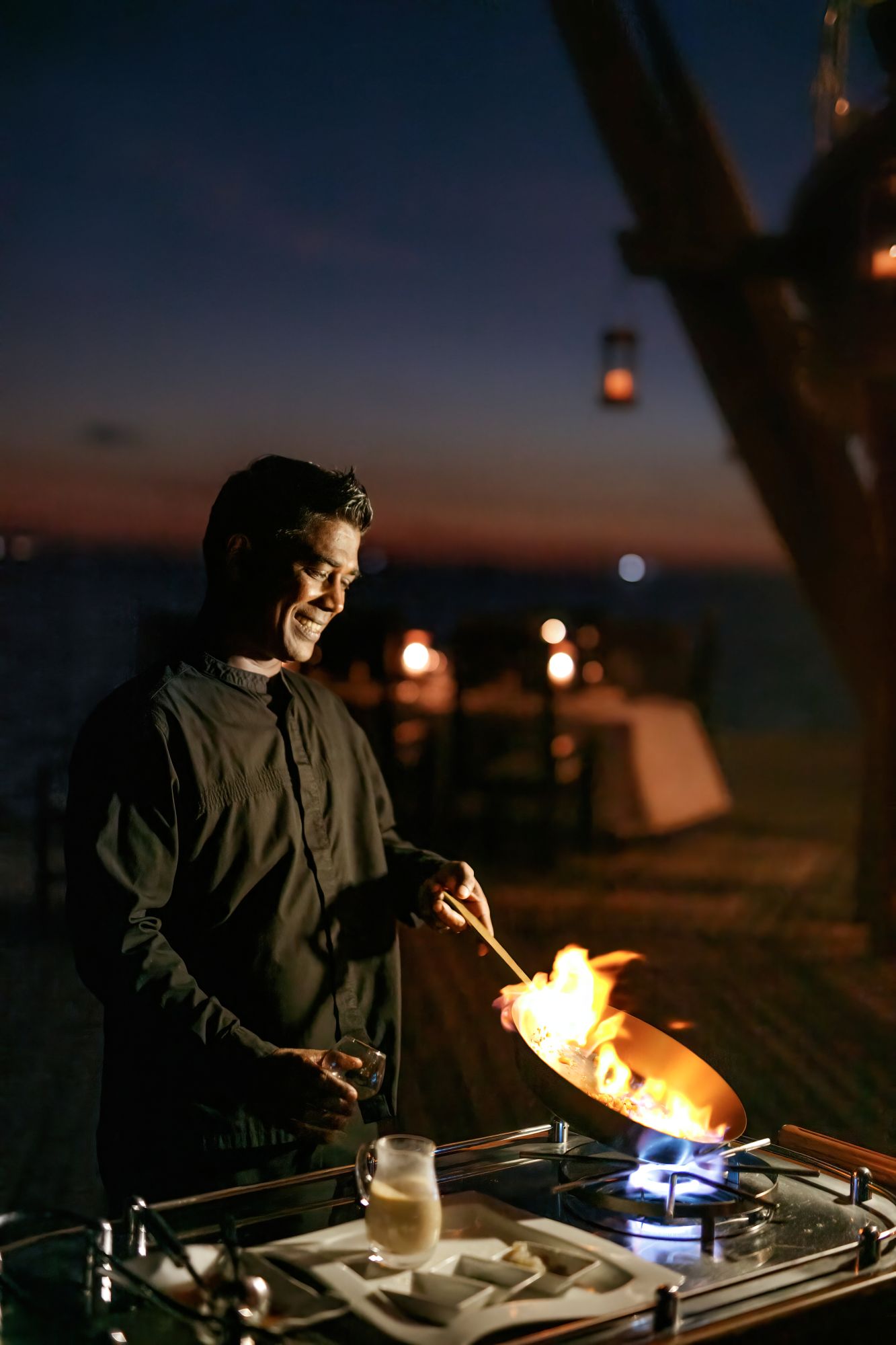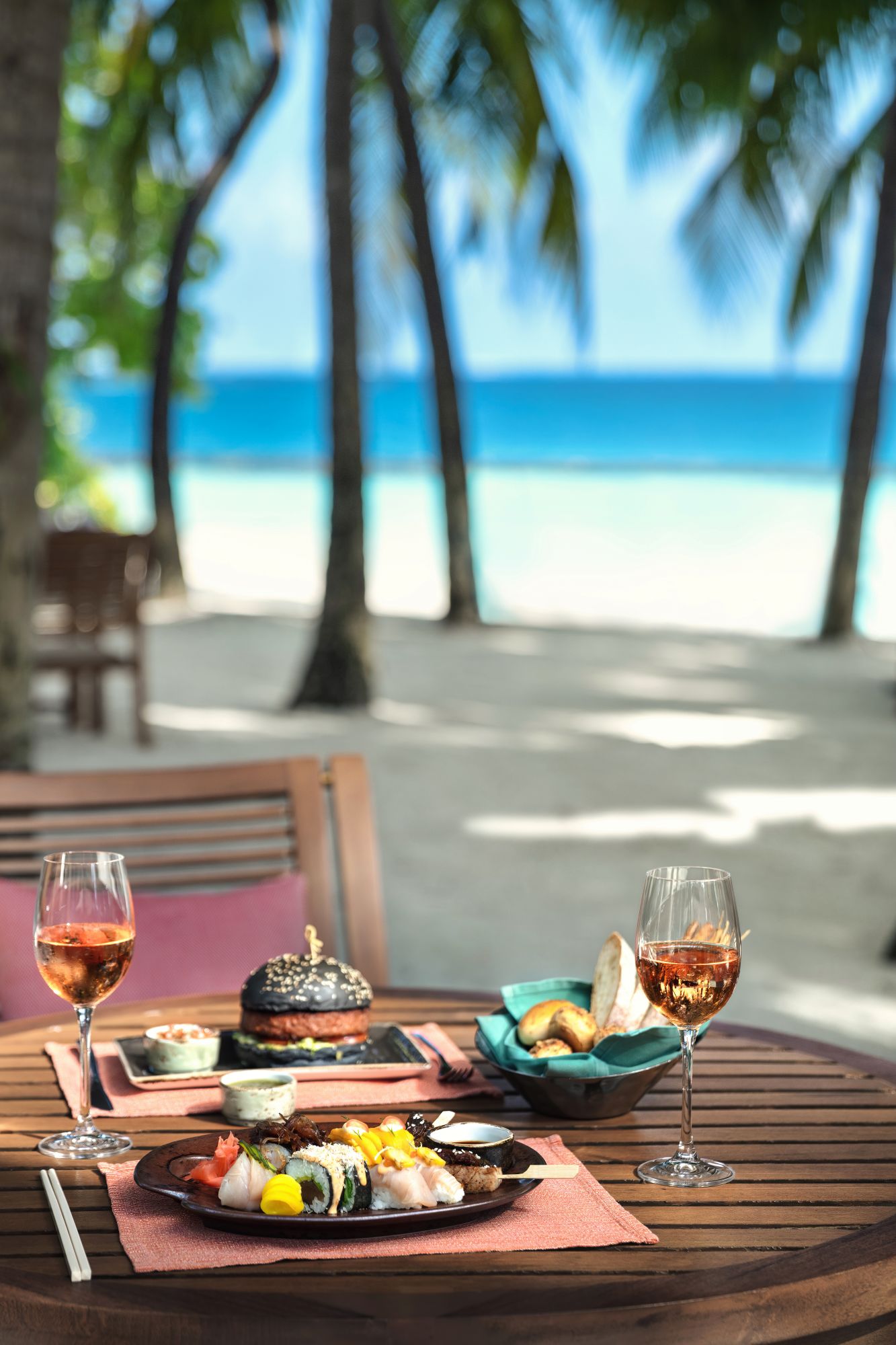 Dining is a theatre of its own. At Lime, mornings begin with Champagne breakfasts by the water’s edge. Cayenne Grill serves flame-fired seafood beneath a thatched pavilion, its open sides framing the lagoon. And then there is The Lighthouse the white sail rising over the water has become a Maldivian landmark. Here, fine dining takes on an almost mythic quality: contemporary dishes paired with rare vintages, while the sea darkens to indigo and the horizon seems infinite. At Sails Bar, hammocks sway under palms; at The Lighthouse Lounge, cocktails arrive just as the sun sinks into the ocean. For the ultimate privacy, there are sandbank picnics, dhoni dinners and the Piano Deck suspended above the lagoon dining settings that feel almost impossible in their romance.