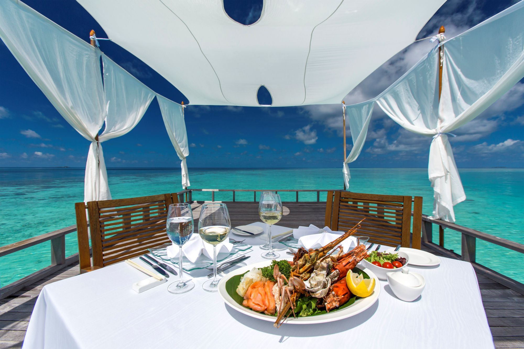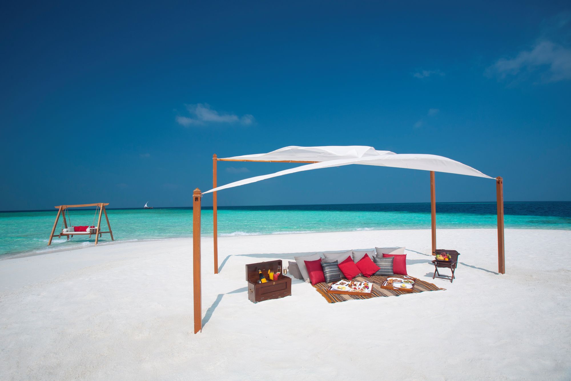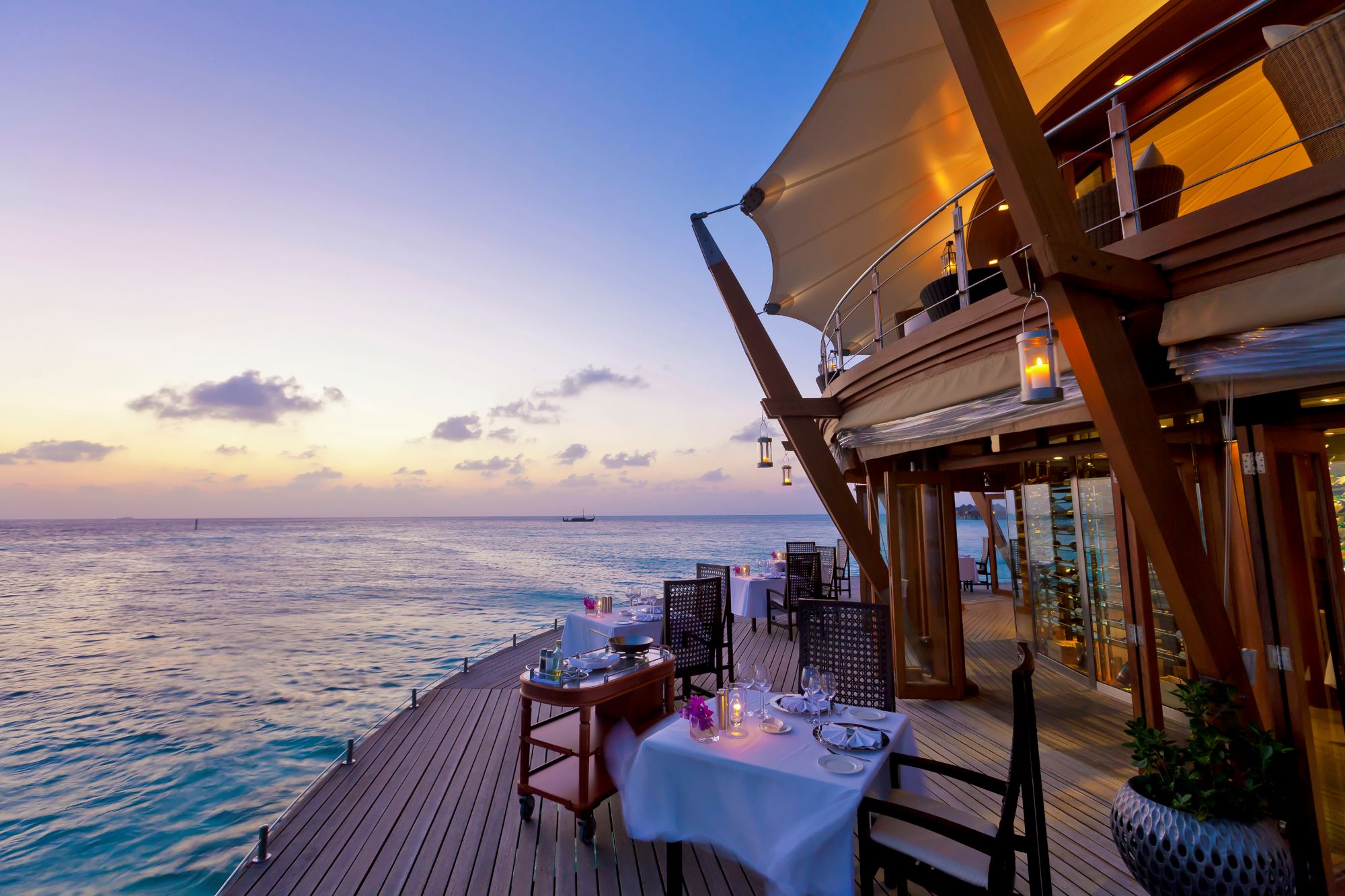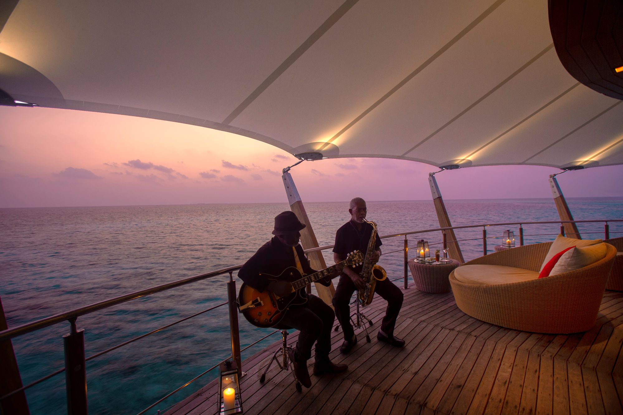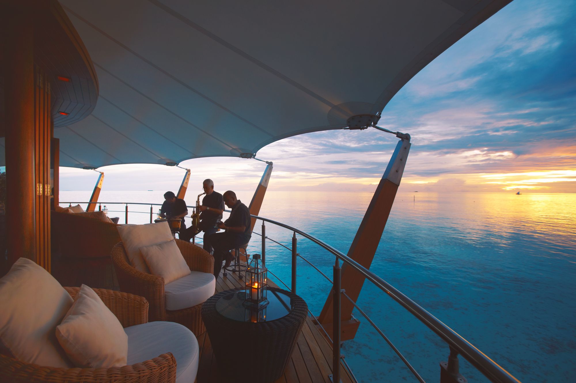 Dining is a theatre of its own. At Lime, mornings begin with Champagne breakfasts by the water’s edge. Cayenne Grill serves flame-fired seafood beneath a thatched pavilion, its open sides framing the lagoon. And then there is The Lighthouse the white sail rising over the water has become a Maldivian landmark. Here, fine dining takes on an almost mythic quality: contemporary dishes paired with rare vintages, while the sea darkens to indigo and the horizon seems infinite. At Sails Bar, hammocks sway under palms; at The Lighthouse Lounge, cocktails arrive just as the sun sinks into the ocean. For the ultimate privacy, there are sandbank picnics, dhoni dinners and the Piano Deck suspended above the lagoon dining settings that feel almost impossible in their romance.