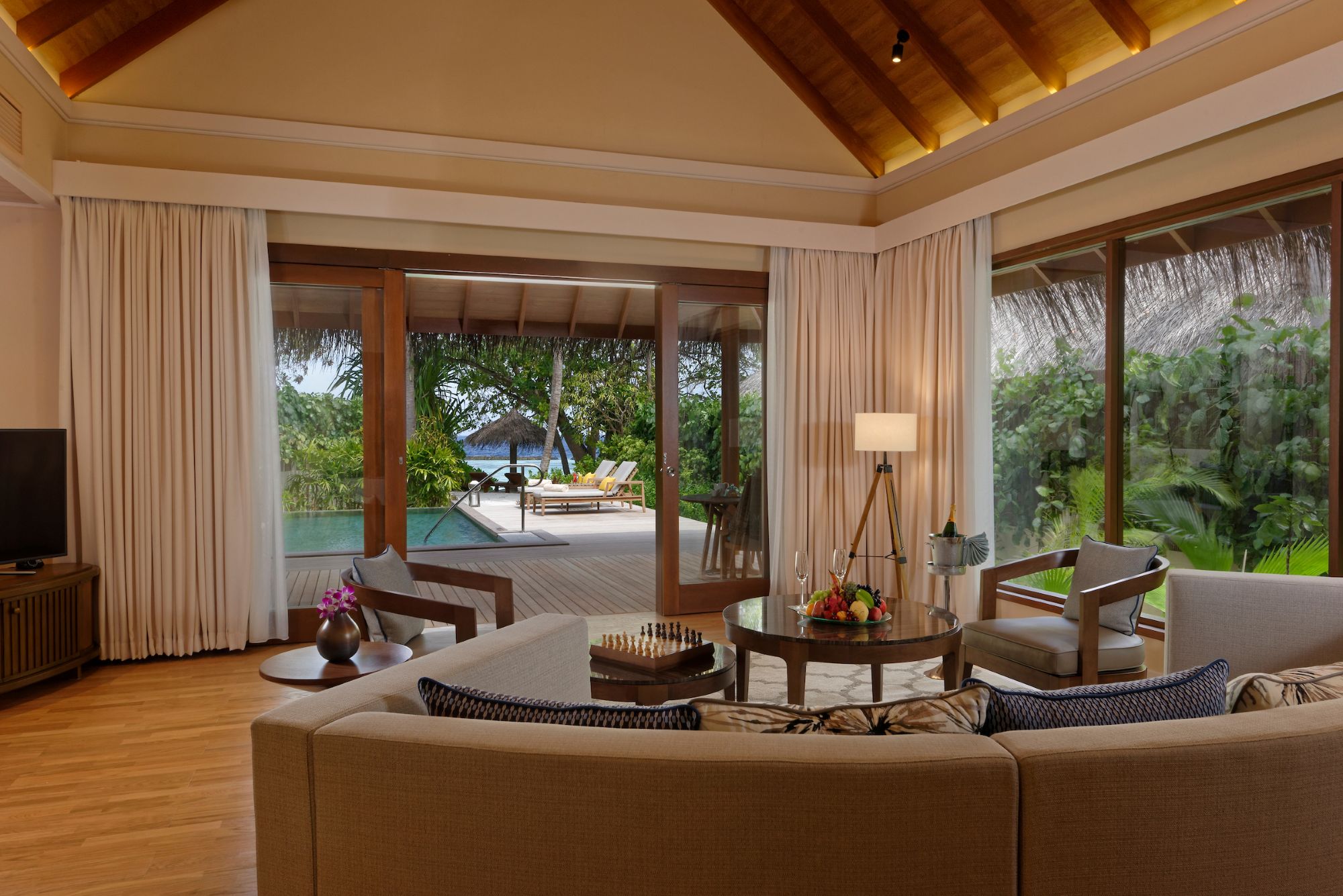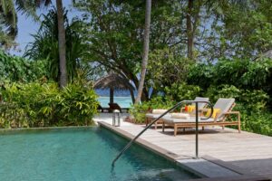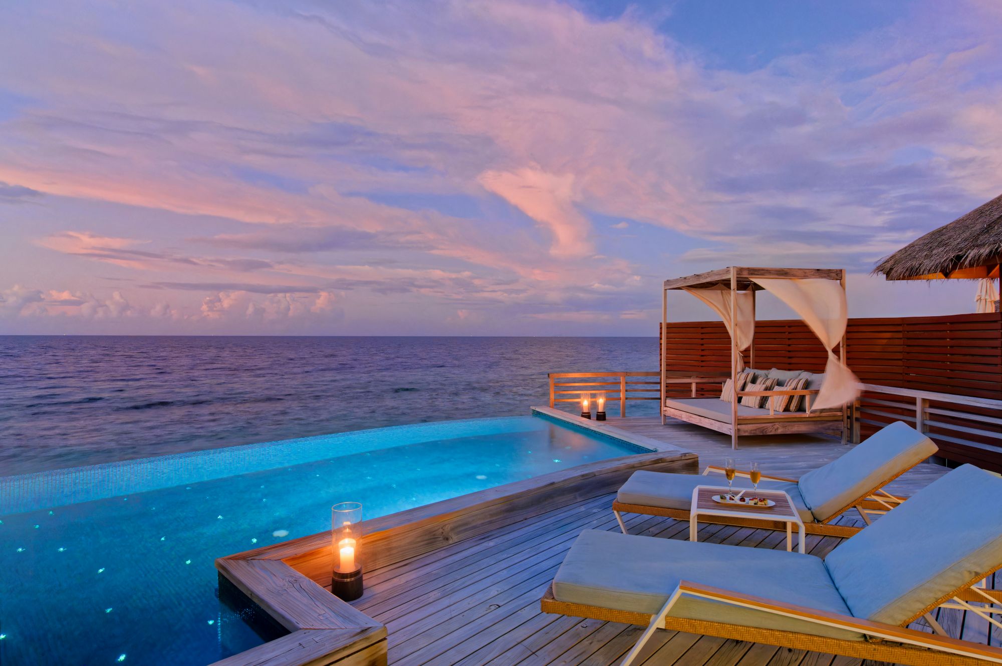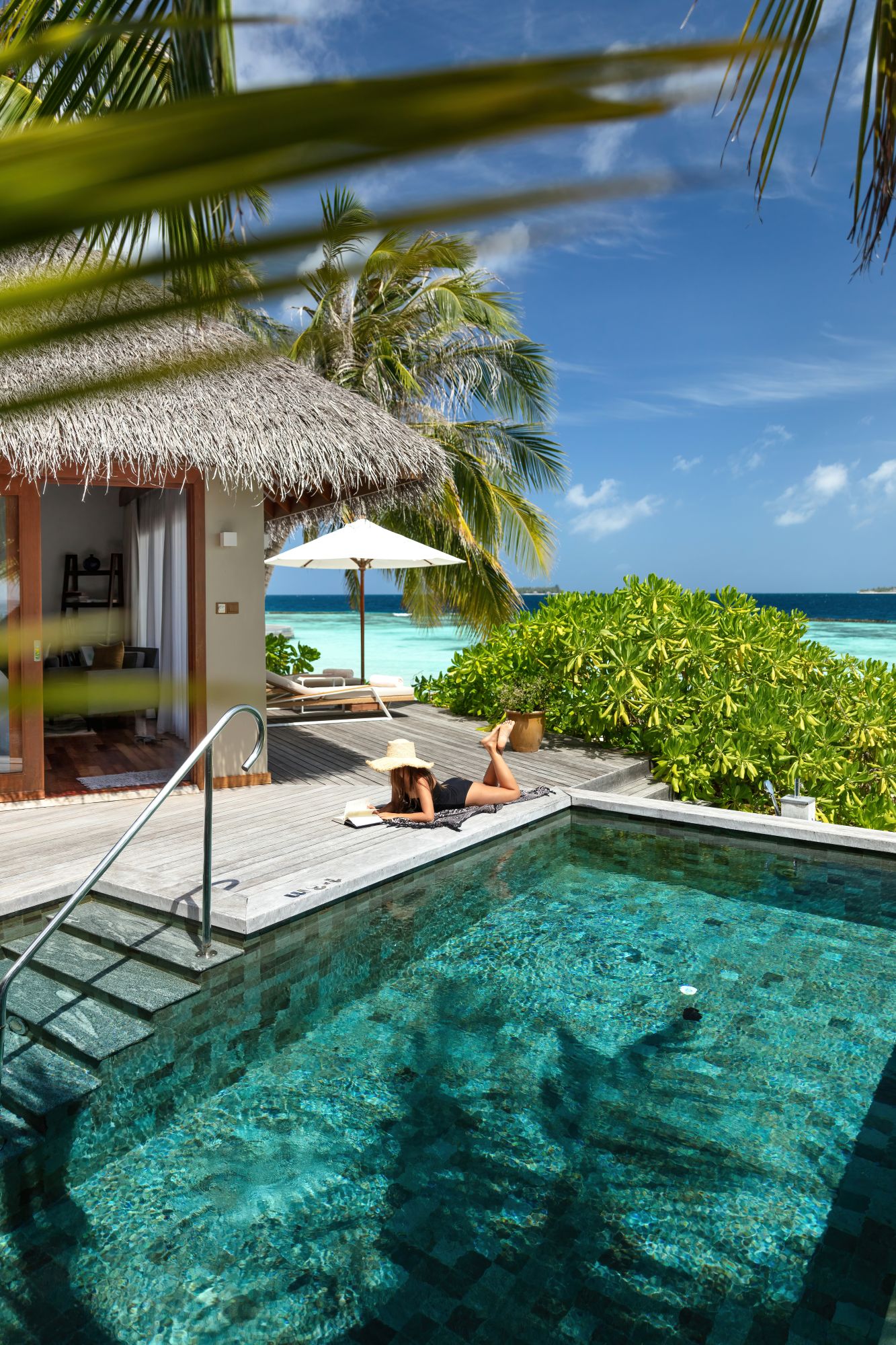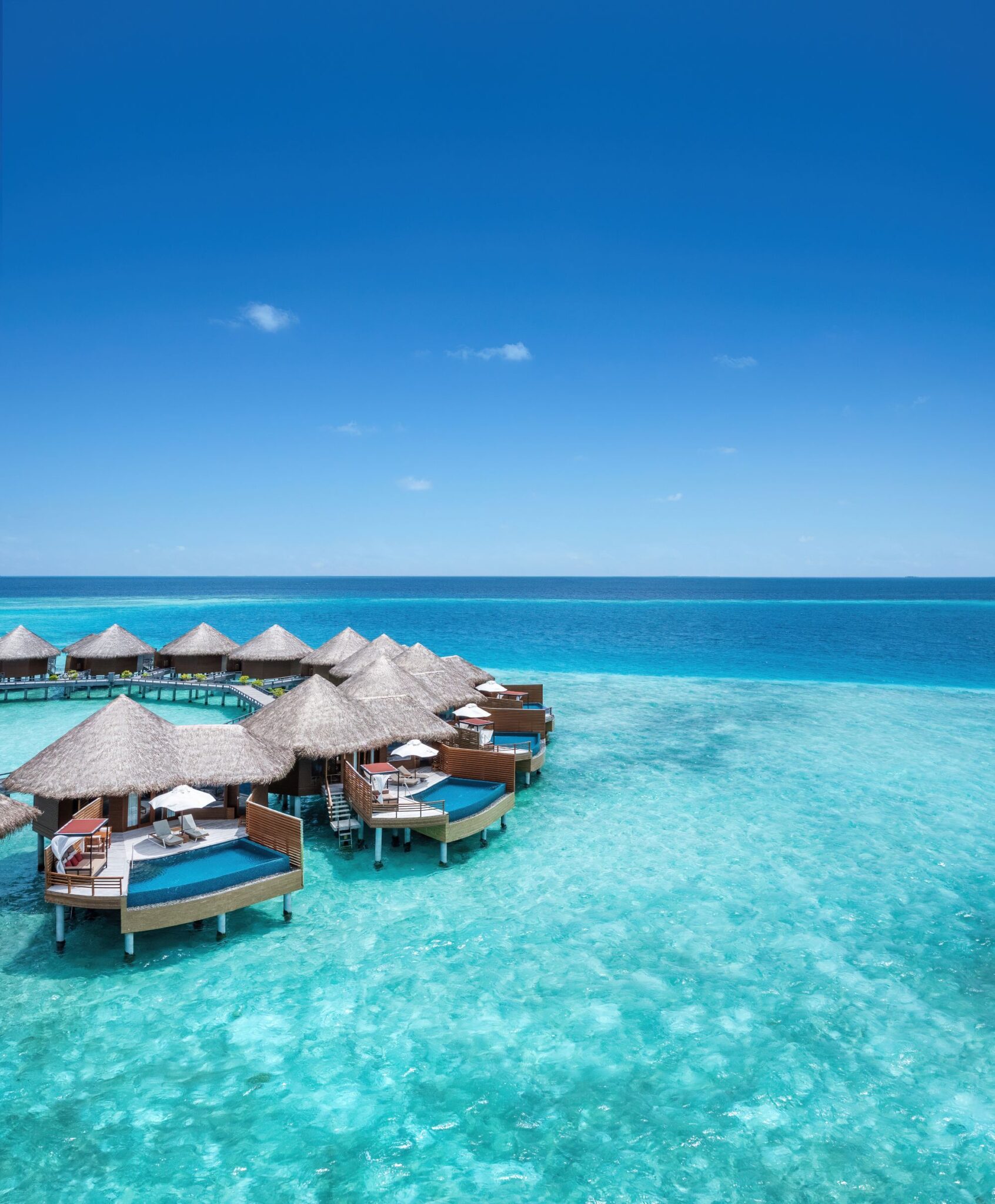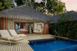 Baros has always favoured intimacy over scale. With only 75 villas, it feels more private hideaway than resort. Beach villas sit tucked into tropical foliage, their gardens spilling onto the sand; overwater villas hover above the lagoon, each with broad decks and timber steps into the sea. Many have private pools, but all share the same design ethos: contemporary comfort softened by Maldivian textures, outdoor showers open to the sky, and spaces that invite the rhythm of the island in. Adult-focused and soothingly calm, Baros has become a place to which couples and honeymooners return, often again and again, drawn by a serenity that feels timeless.
