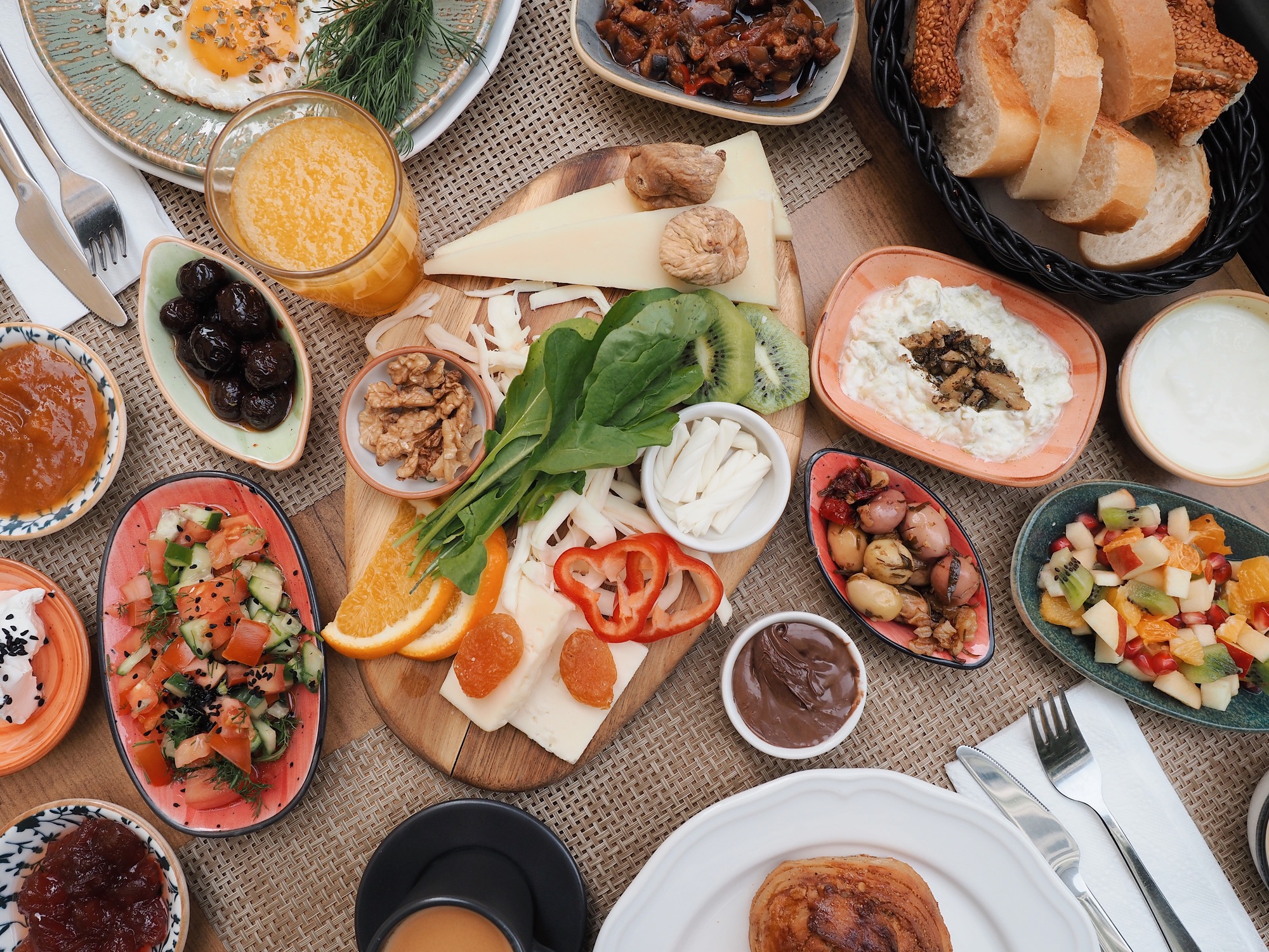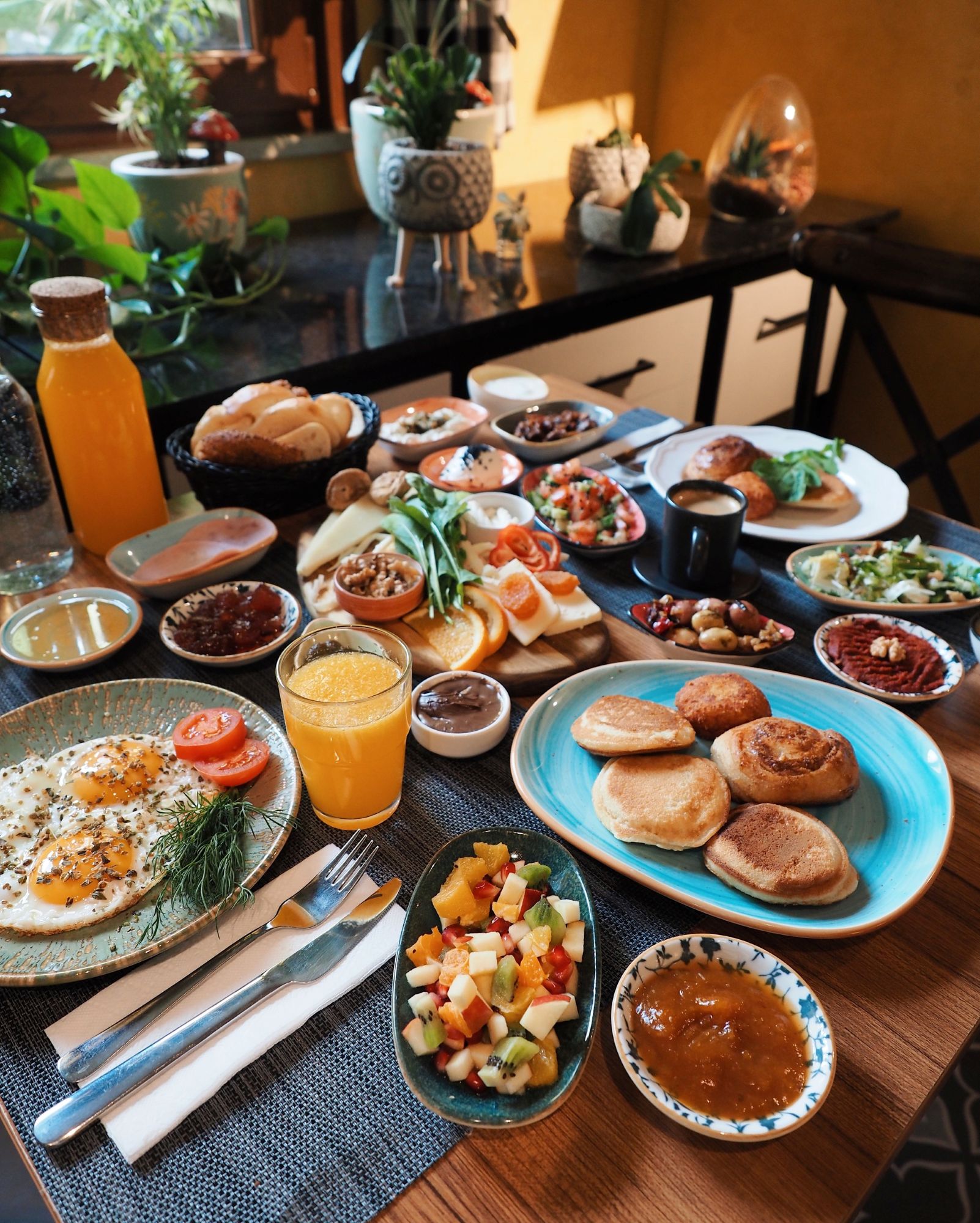 Breakfast is an integral part of daily life in Turkey and always taken seriously. Here, it is approached with generosity and pride. Expect a generous smorgasbord of cheeses, olives, eggs, fresh bread and handmade specialities – pisi, pancakes, simit and homemade jams – laid out to be enjoyed at a leisurely pace before stepping out to explore the city.
