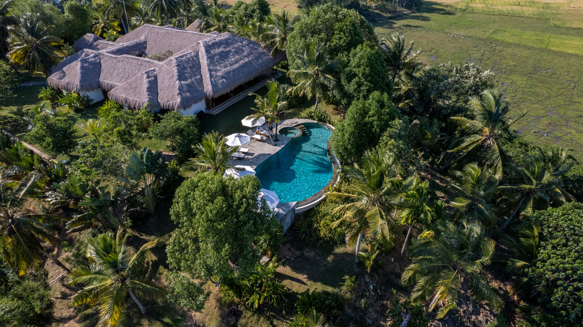Tucked high on a jungle-clad hillside, just minutes from Sri Lanka’s golden southern coastline, Tekanda Lodge is a rare kind of retreat—family-owned, deeply personal, and designed to connect you to the natural rhythms of island life. With just six individually styled rooms, this intimate boutique hotel near Ahangama and Kabalana Beach feels like the private pool house of a very stylish friend—laid-back, quietly luxurious, and wrapped in greenery with far-reaching views across rice paddies and rainforest.