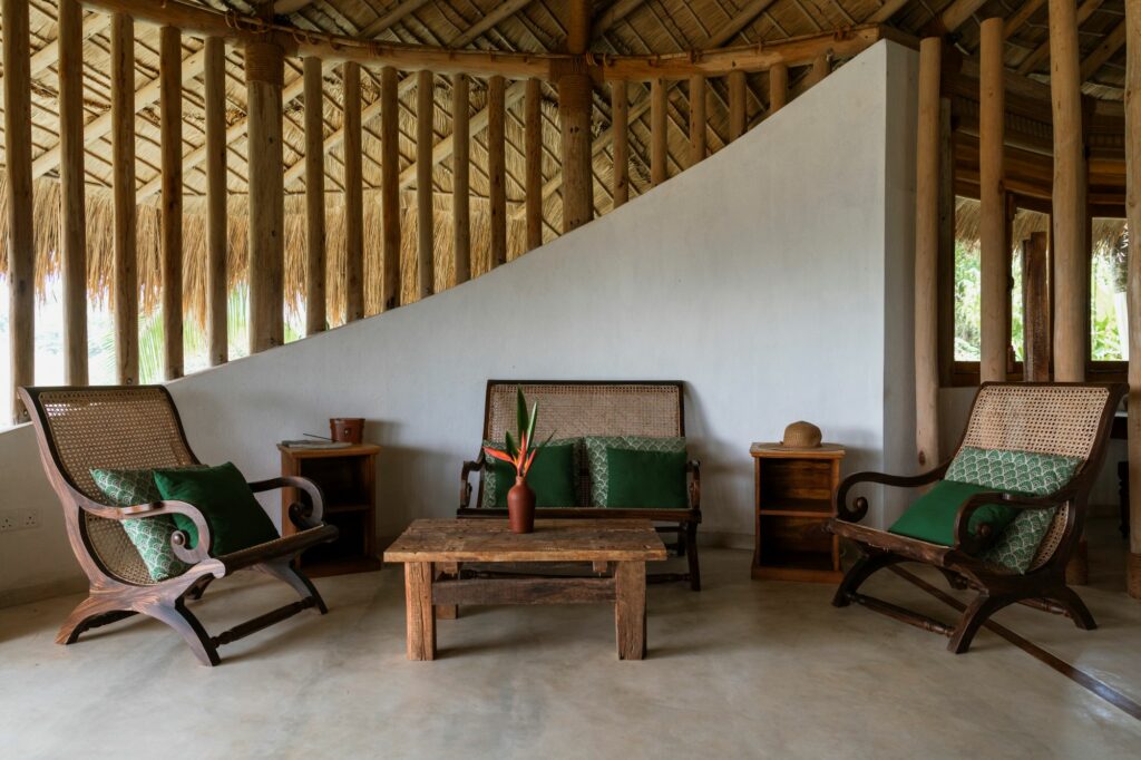 At its heart, Tekanda Lodge is about community, sustainability, and soul. The estate’s ten acres—once a working coconut and tea plantation—have been thoughtfully rewilded, with organic cinnamon, tea, and pepper now growing alongside the palms. The lodge itself is built from sustainable local materials and powered primarily by solar energy. Just down the road, the not-for-profit Tekanda Foundation—co-founded by the owners—supports over 300 local women and children through free education and vocational training, including Sri Lanka’s first ever girls’ cricket academy.