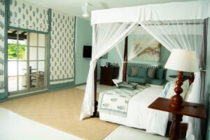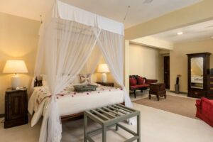 The most characterful suite at The Villa Bentota, the Mohotti Suite is reached via a graceful wooden staircase and features an elegant sitting room and two spacious bedrooms sharing a single bathroom with shower. Both bedrooms are styled with four-poster beds and thoughtful colonial touches that echo the villa’s historic charm.