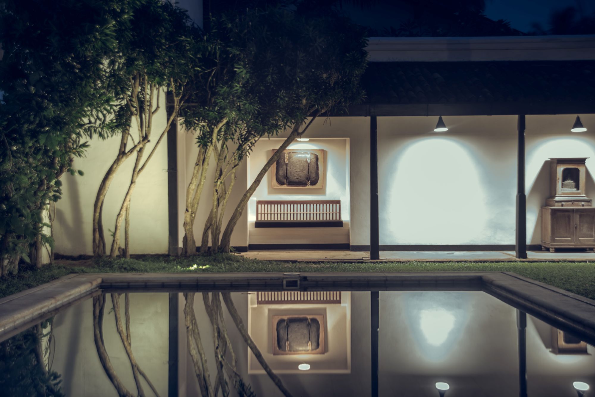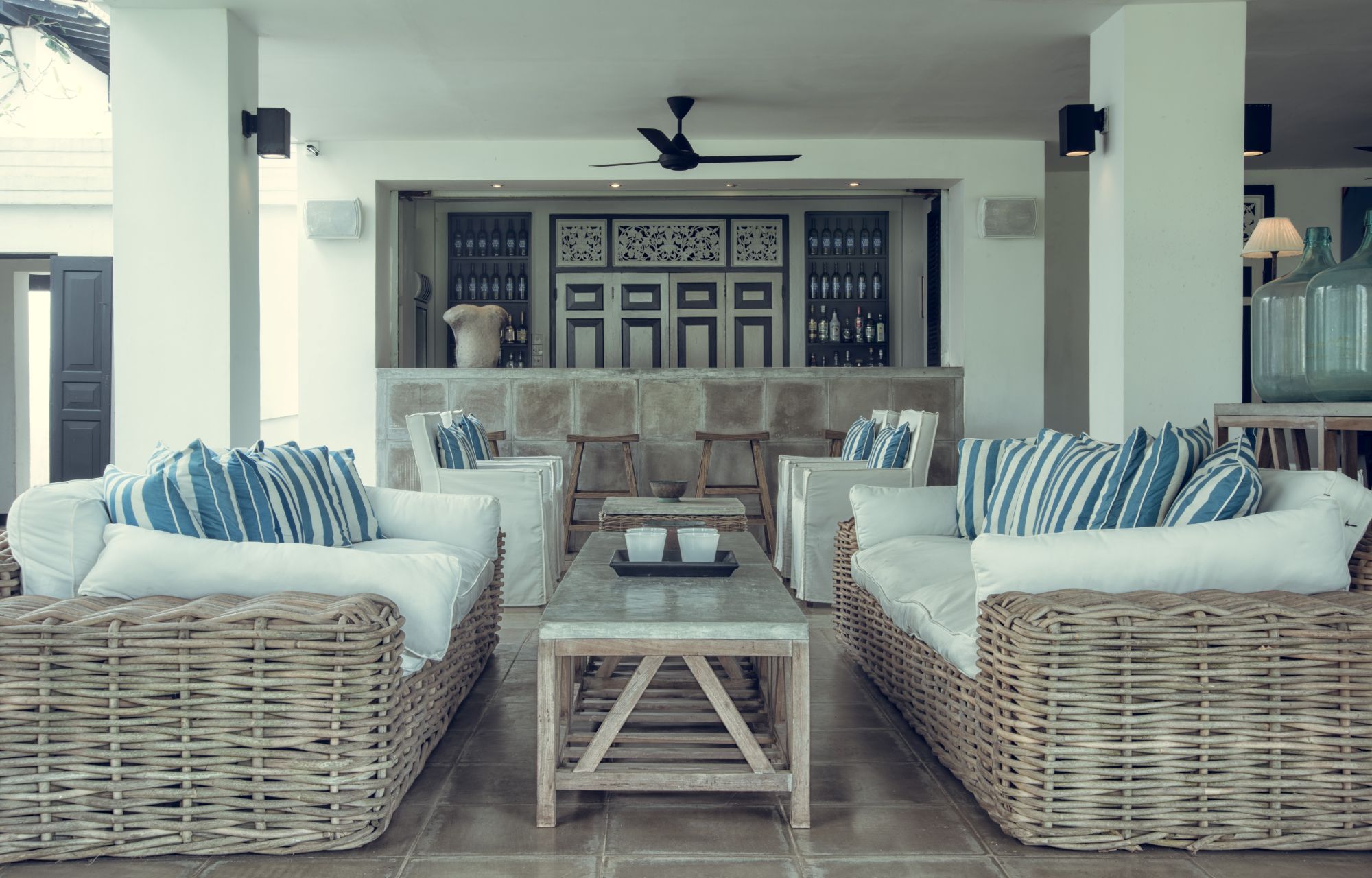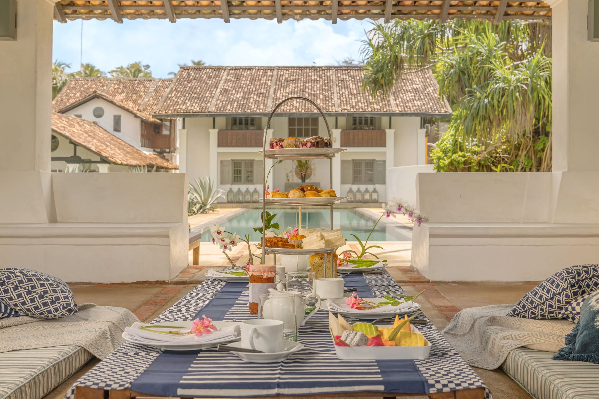 Named in honour of Geoffrey Bawa, the villa’s original architect, this relaxed space is ideal for a sunset cocktail or slow aperitif. Lounge beneath the palms with a crisp gin and tonic (local favourites like Rockland Dry and Colombo No.7 are on offer) or a chilled glass from the thoughtfully curated wine list. With sweeping views across the lawn and a soft sea breeze drifting through, Bawa’s Bar invites you to linger.