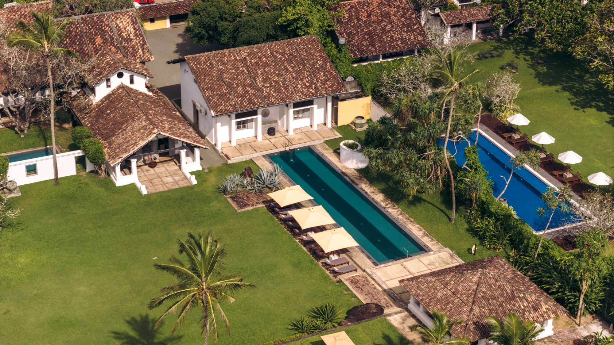 These five Superior Suites sleep between three to four guests in spacious comfort. Each features a generous balcony overlooking the gardens and lawns — perfect for quiet moments with a cup of Ceylon tea or a good book. One of the suites also boasts its own private pool set within a secluded courtyard.