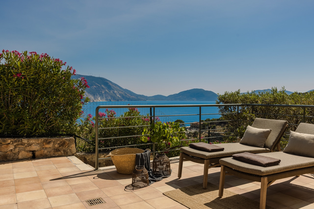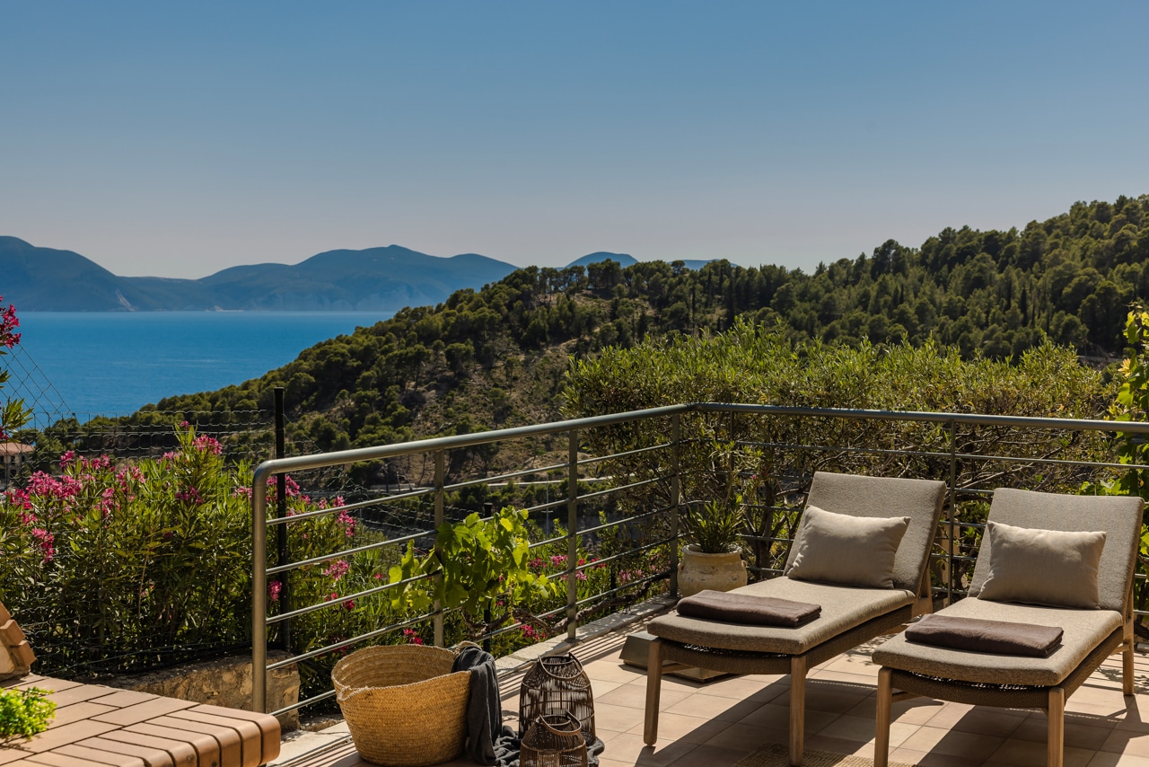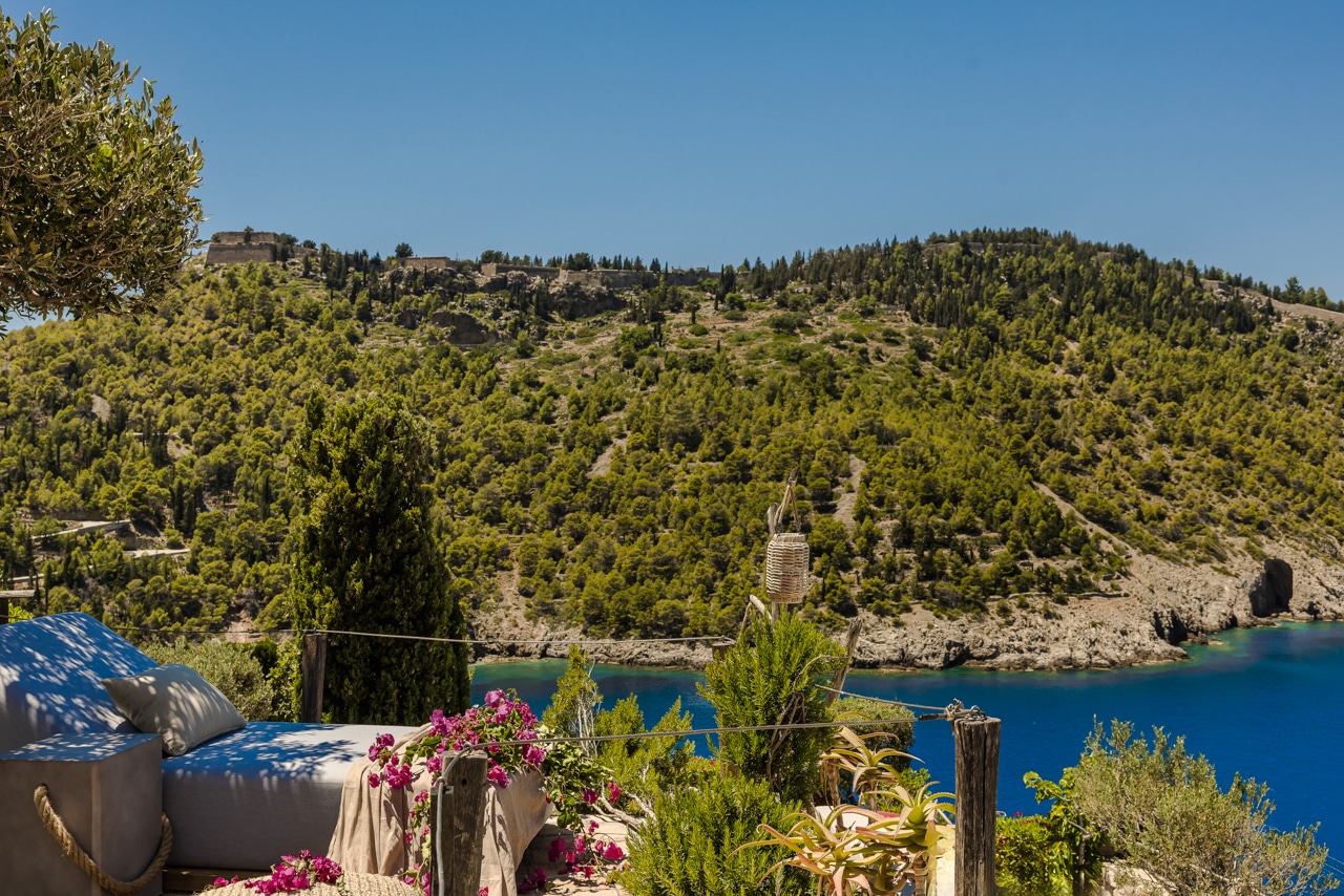 A romantic two-bedroom villa for four with sweeping sea views over Assos Bay