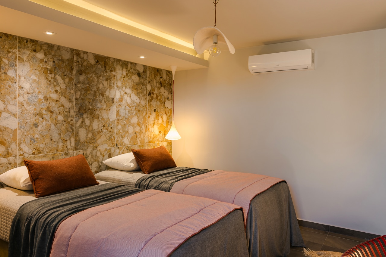 Sleeping four guests across one double and one twin bedroom, Villa Agapi is an elegant retreat at the edge of Braunis Horio, where the hillside meets the forest and the Ionian stretches endlessly beyond. The name, meaning love in Greek, feels entirely apt: this is a villa made for romance, whether for honeymoons, couples’ escapes, or simply anyone drawn to Assos’ unspoilt beauty.
