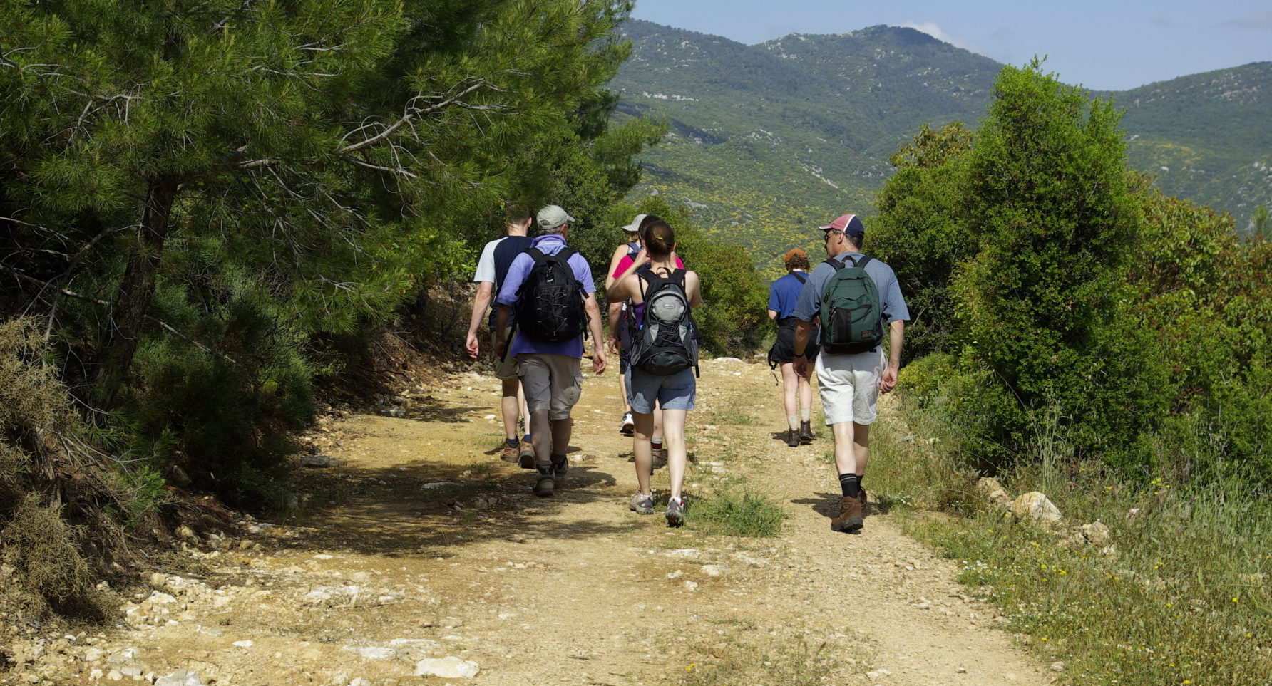This path continues through some scrubby areas, crosses an olive grove and then narrows to the path you will follow for the next hour/hour and a half.